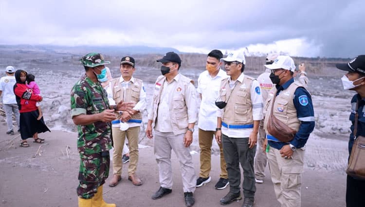TIMES Cilegon/Ketua Dewan Penasehat Partai Gerindra DPD Jawa Timur, Bambang Haryo Soekartono bersama DPC Partai Gerindra Surabaya, Lumajang dan Malang saat meninjau dan menyerahkan bantuan Bencana Erupsi Gunung Semeru.Foto Partai Gerindra Jatim