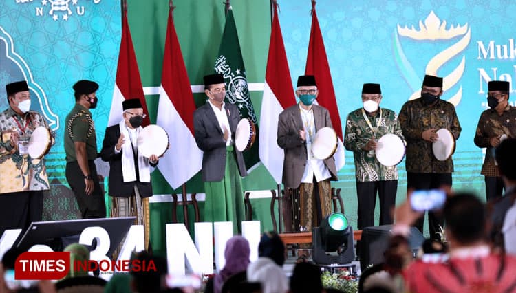 TIMES Cilegon/Presiden Jokowi (Joko Widodo) membuka secara resmi Muktamar Ke-34 Nahdlatul Ulama di Pondok Pesantren Darussa’adah, Gunung Sugih, Lampung Tengah, Rabu (22/12/2021). (FOTO: Moh Ramli/TIMES Indonesia)