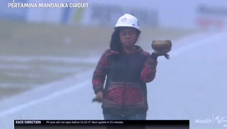 TIMES Cilegon/Raden Rara Isti Wulandari, sang pawang hujan saat Sirkuit Mandalika, Lombok Tengah, NTB, Minggu (20/3/2022) (FOTO: t-2.tstatic.net)